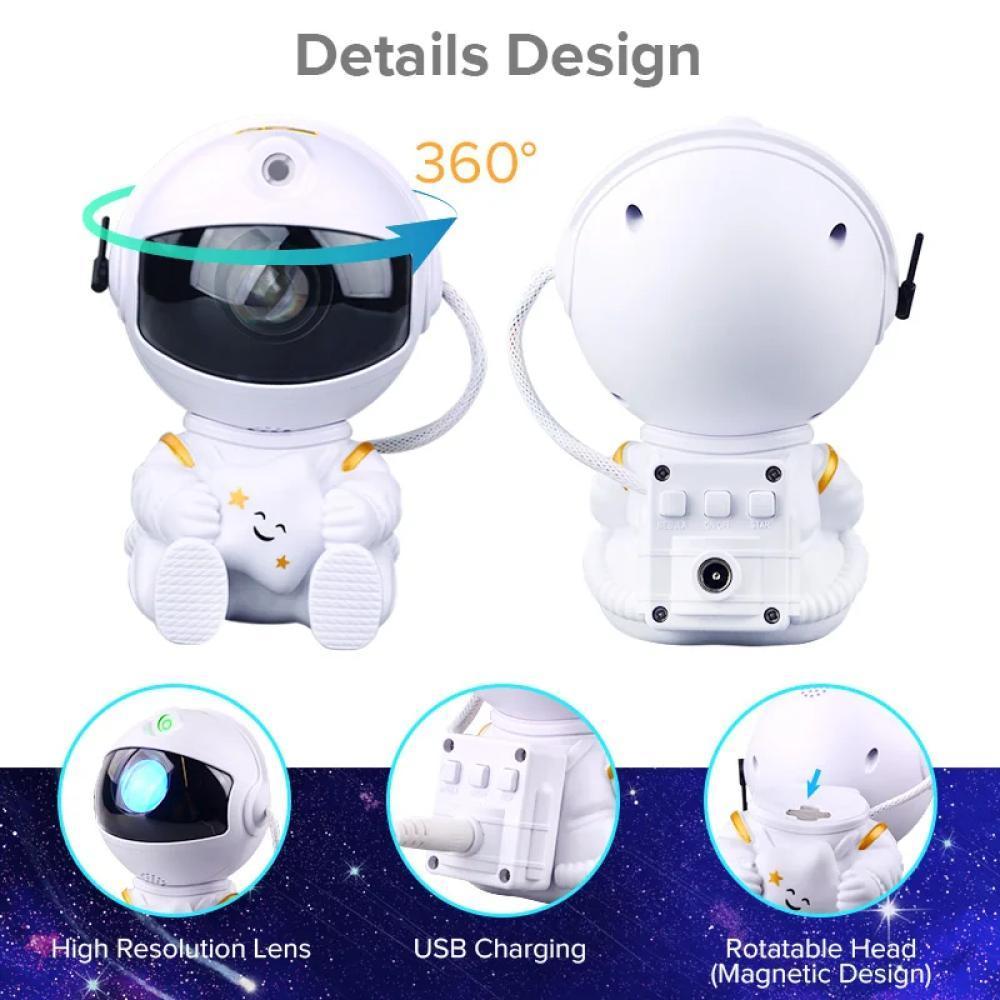بروجكتور اضاءة النجوم على شكل رائد فضاء يضفي لمسة ساحرة على غرفتك، يعرض سماء النجوم بشكل واقعي مع تصميم مبتكر وجذاب يناسب الأطفال والكبار، مثالي للاسترخاء ولخلق جو مميز في أي مكان.
